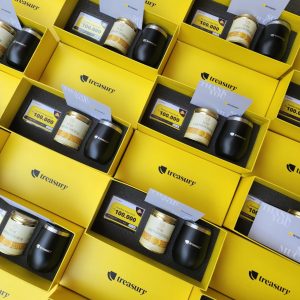 Untuk menyemarakkan momen spesial bersama relasi bisnis dan partner terpercaya, Treasury mempercayakan Chillduck Custom merancang Gift Set Eksklusif dengan nuansa kuning cerah yang merepresentasikan semangat dan optimisme brand mereka.